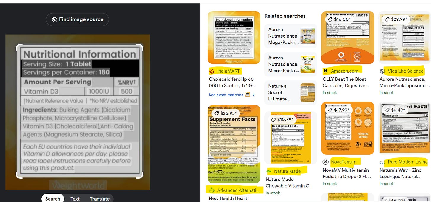 De facto, quando fiz uma pesquisa de imagem inversa para o rótulo do comprimido de vitamina D da Índia, é tudo a mesma merda, independentemente da marca e do produto dentro do frasco: