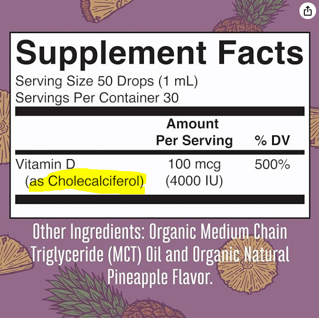 Agora que sabia o que estava a procurar para encontrar respostas, a minha pesquisa mudou. Já não estava a tentar descobrir o que estava no meu frasco de suplemento GNC, que estava claramente rotulado com Vitamina D3, estava agora a tentar descobrir o que é isto: