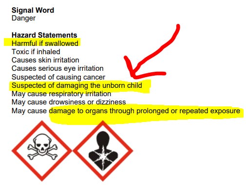 Esta não é a minha opinião ou uma teoria da conspiração. Esta informação de segurança está na página dois da MSDS… pode causar danos ao feto… e estamos a encorajar as mães grávidas a tomá-lo: