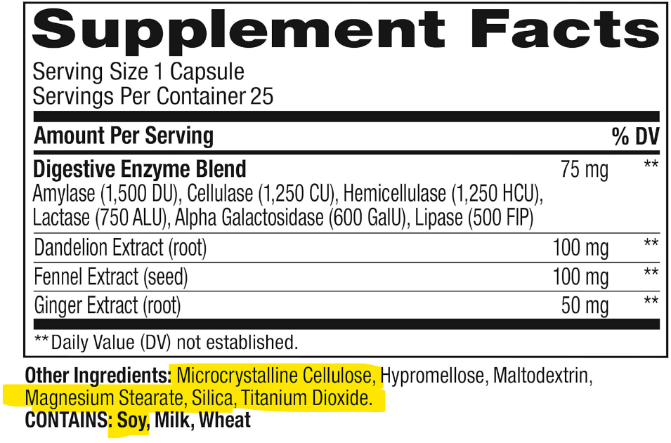 E esta treta das vitaminas “naturais” não se limita à vitamina D. Aqui está Olly, comprimidos “Beat the Bloat”, feitos de dente-de-leão, funcho, gengibre e enzimas, o que parece fantástico!