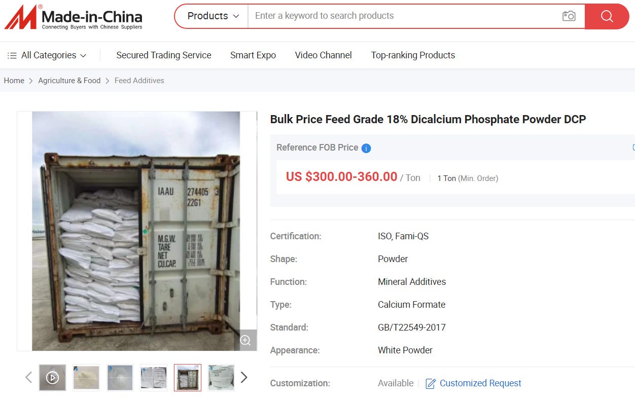 Aqui está o pó de fosfato dicálcico bruto, pronto para ser misturado com outros produtos químicos para fazer vitaminas sintéticas ou produtos farmacêuticos: