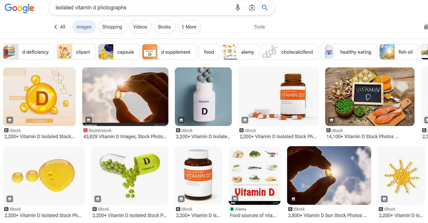 PESQUISA DE IMAGENS NO GOOGLE #1: “FOTOGRAFIAS DE VITAMINA D ISOLADA”