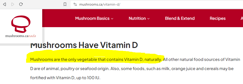 Mas vamos fingir que o que eles usaram foi o plasma natural da membrana do cogumelo, como é que a explosão com luz UV “encontra” a Vitamina D quando nos dizem que a Vitamina D já está naturalmente presente no cogumelo? “Confie na ciência”, suponho.