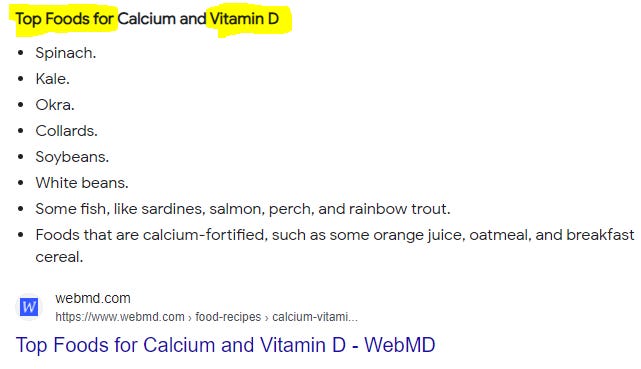 O que, por si só, é estranho, porque todos os outros sites, incluindo o NIH, CDC e WebMD dizem que a vitamina D está em muitos vegetais, incluindo brócolos: