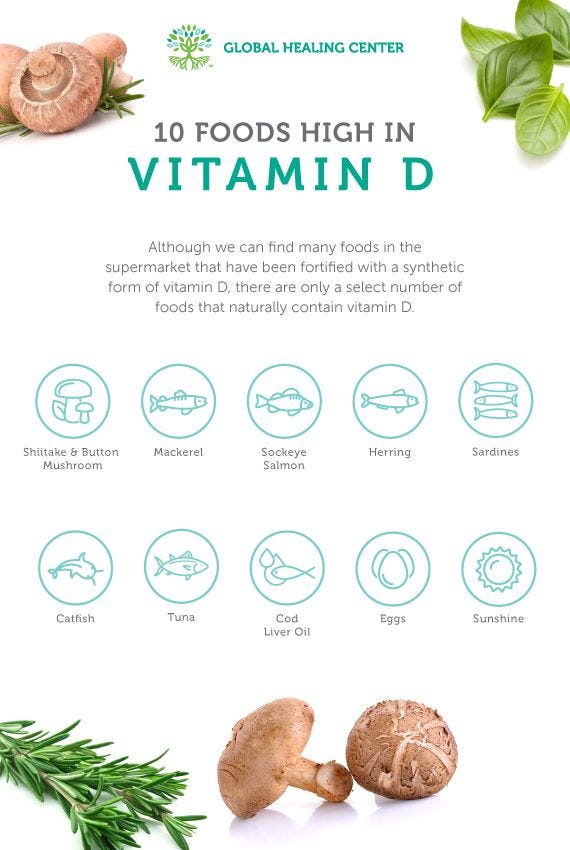 Bem, se é tudo uma fraude, e os testes são uma fraude porque estão a testar uma QUÍMICA SINTÉTICA, e o seu corpo está BAIXO NA QUÍMICA, no meu livro, isso é uma coisa boa. Mas se queres mais vitamina D, se é que isso existe mesmo, Sol. Cogumelos. Nozes. Peixe. Sol. Não há sol? Arranja uma lâmpada solar.
