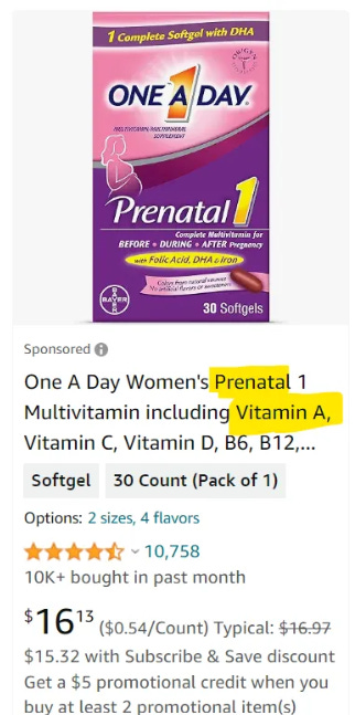 Apesar destes avisos, está a ser comercializada para mães grávidas em vitaminas pré-natais.