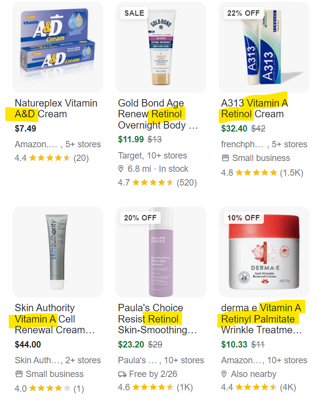Mudei a minha pesquisa na Amazon para “Vitamina A NATURAL”