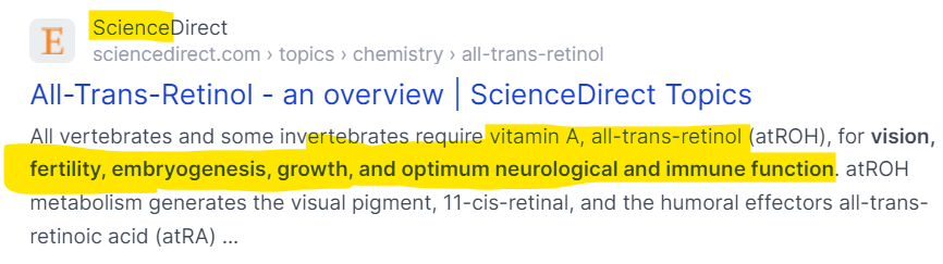 Apesar de nunca ter encontrado todos os ingredientes ou um processo de fabrico detalhado, após 19 horas de pesquisa, penso que já cobrimos suficientemente o que a Vitamina A faz (“Saúde Reprodutiva”).