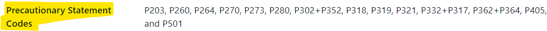 Além disso, este produto químico tem uma lista enorme de “códigos de precaução”: